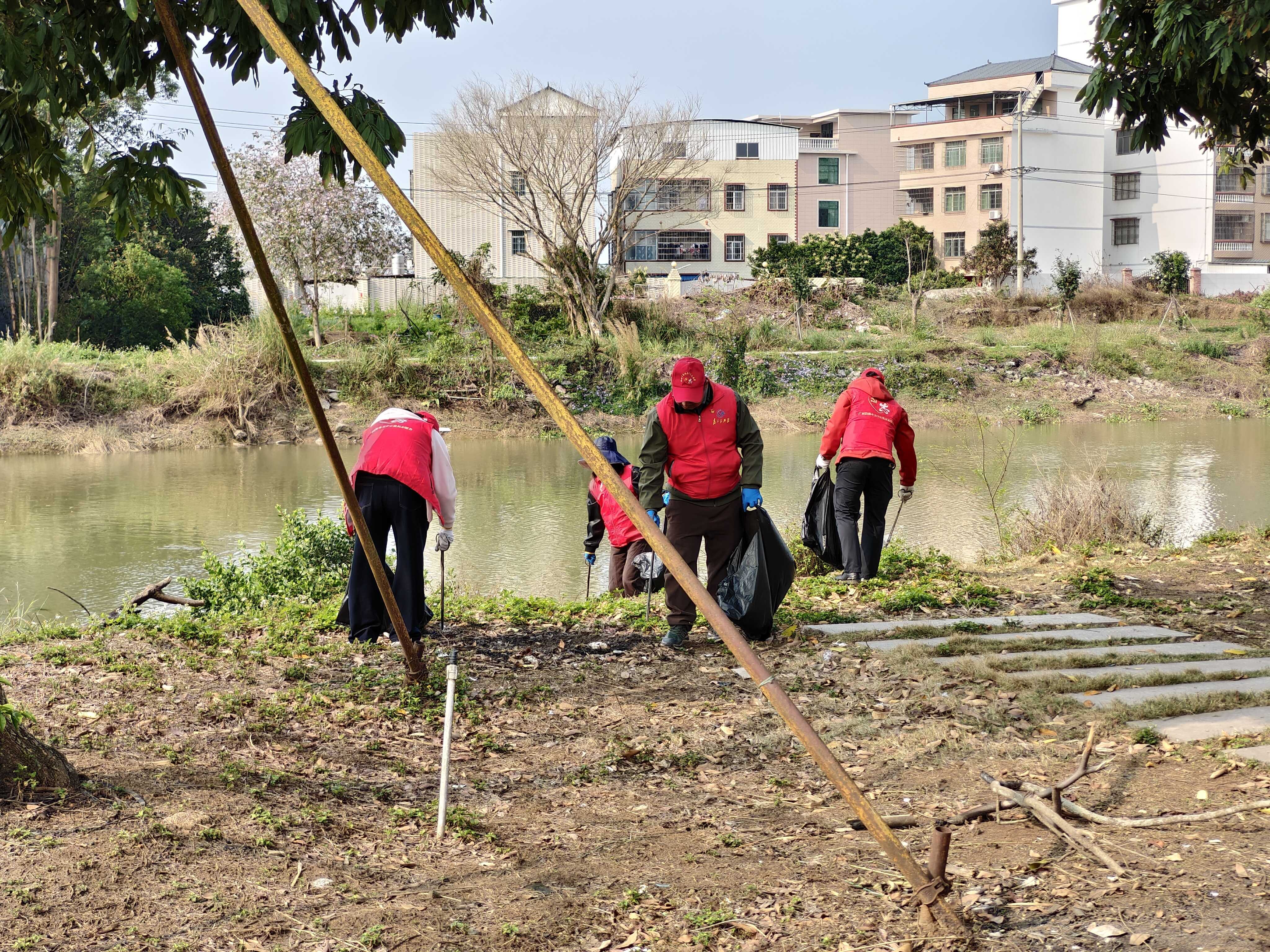 在河道清洁现场,志愿者们分工明确、干劲十足,化身“护河卫士”,沿着大榄江仔细巡查,重点对沿岸的烟头、塑料垃圾、包装袋、枯枝落叶等垃圾进行全面清理。大家不怕脏、不怕累,弯腰捡拾、集中堆放、统一清运,不放过任何一处卫生死角,用双手还原了河道沿岸的整洁风貌,让大榄江生态环境再提升。