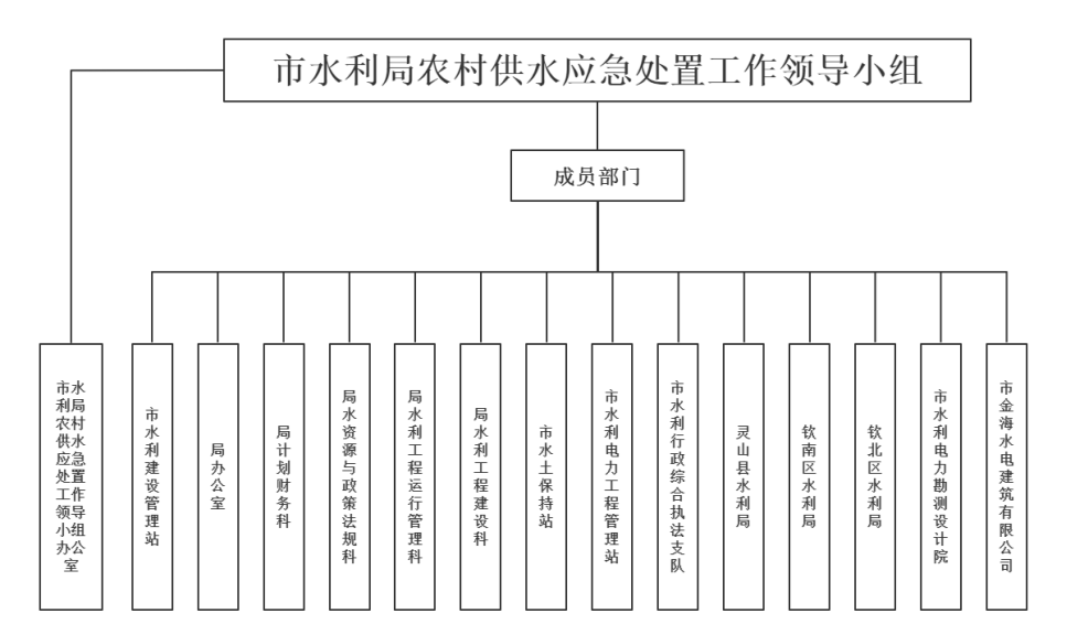 (一)市级应急预案。即本文,是市水利局应急处置平陆运河沿线(钦州段)农村供水突发事件的基本程序和组织原则,由市水利局负责制定并公布实施。