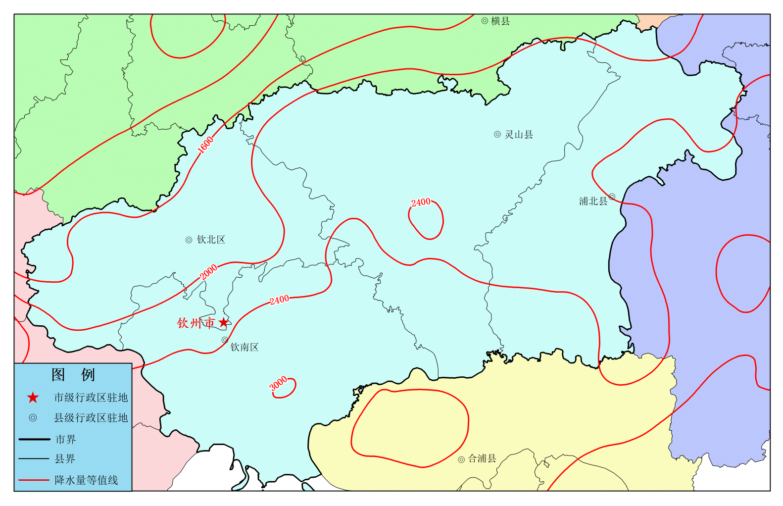 2023年钦州市降水量等值线图