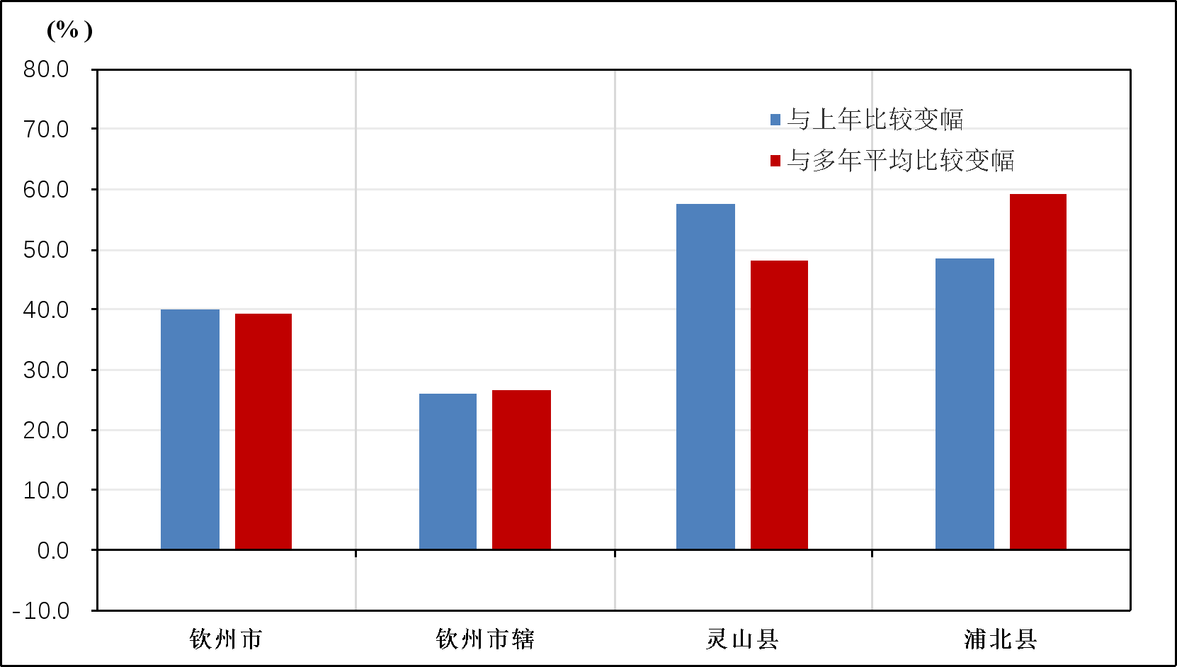 与多年均值比较变幅(%) |
