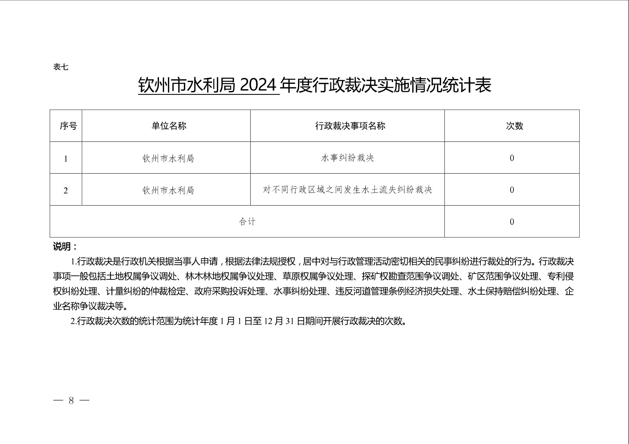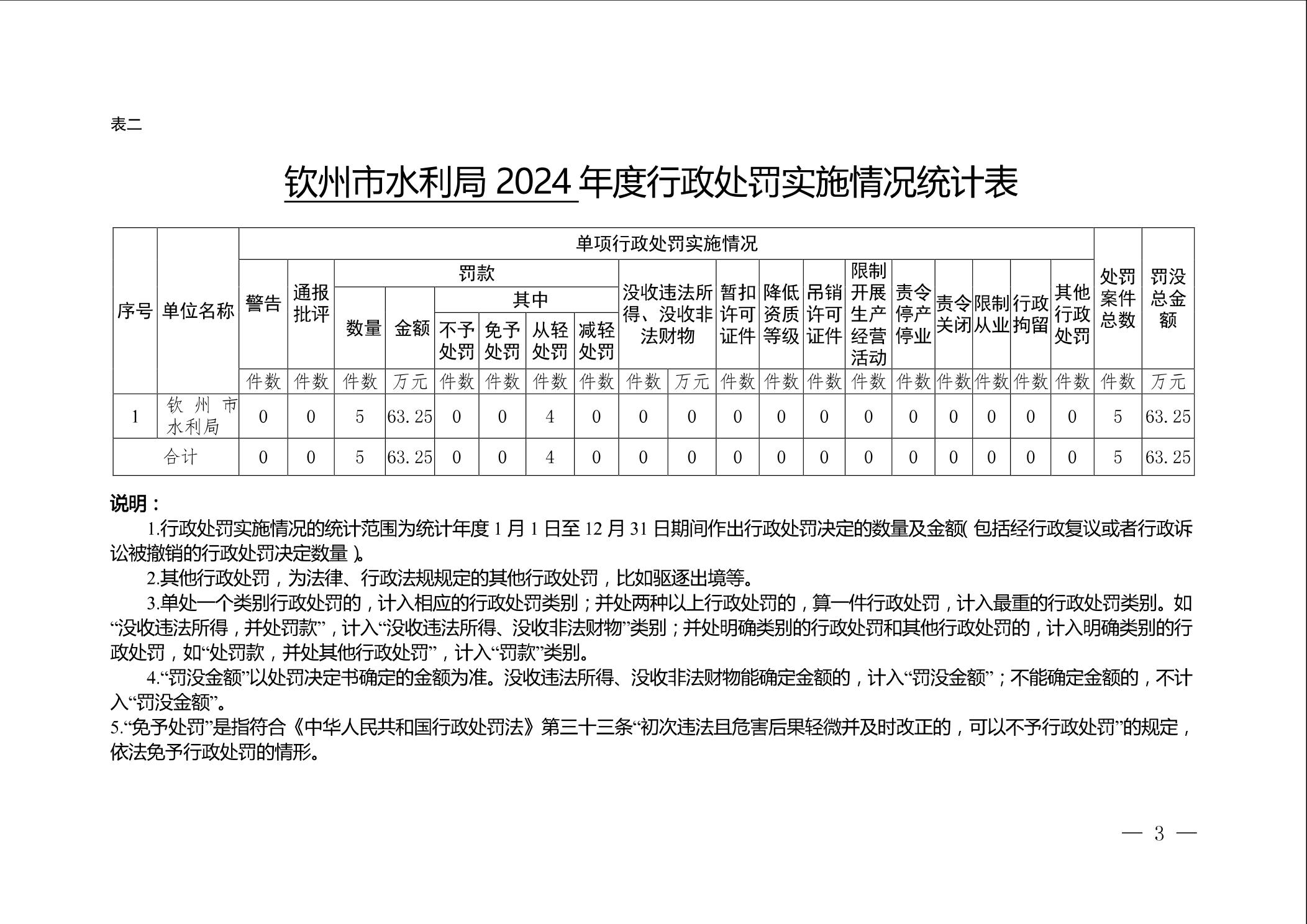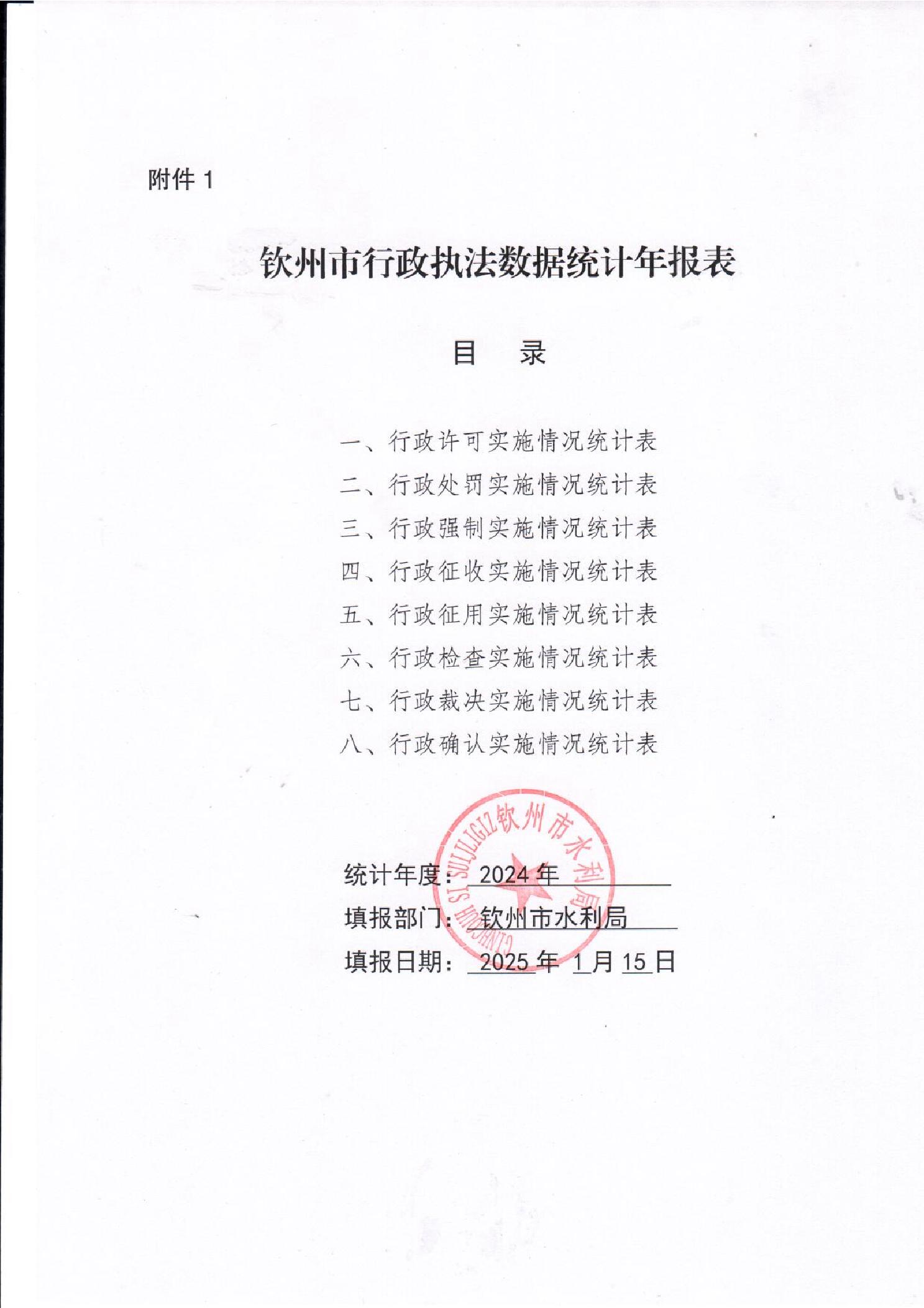 钦州市水利局2024年度行政执法数据