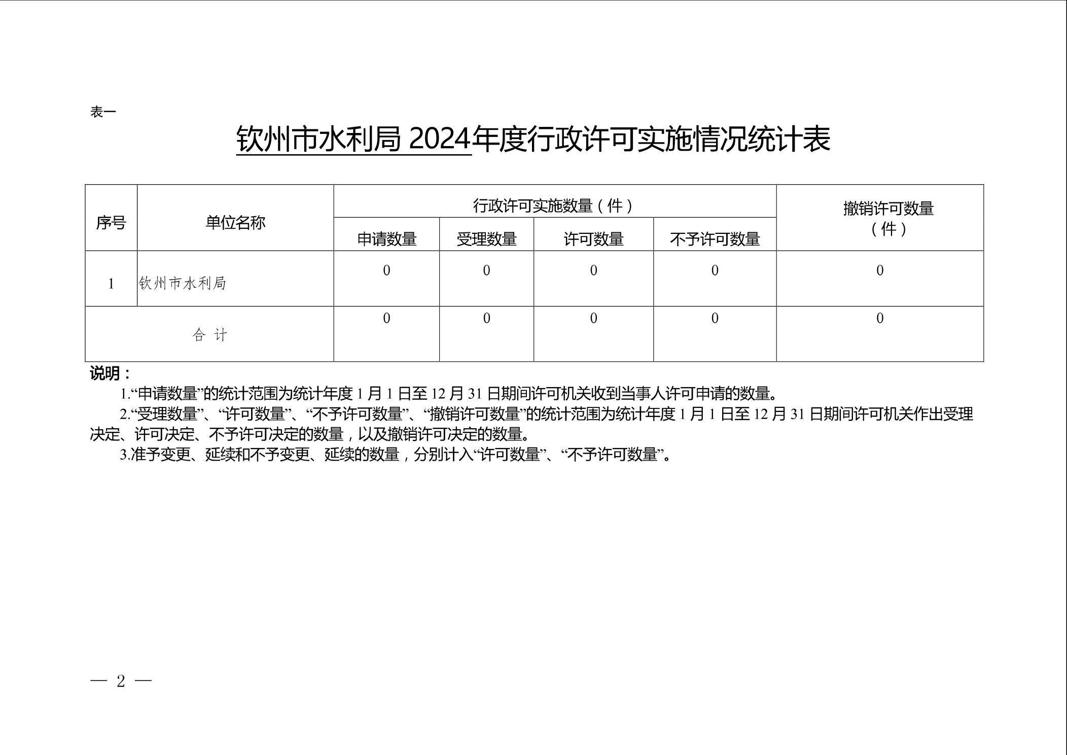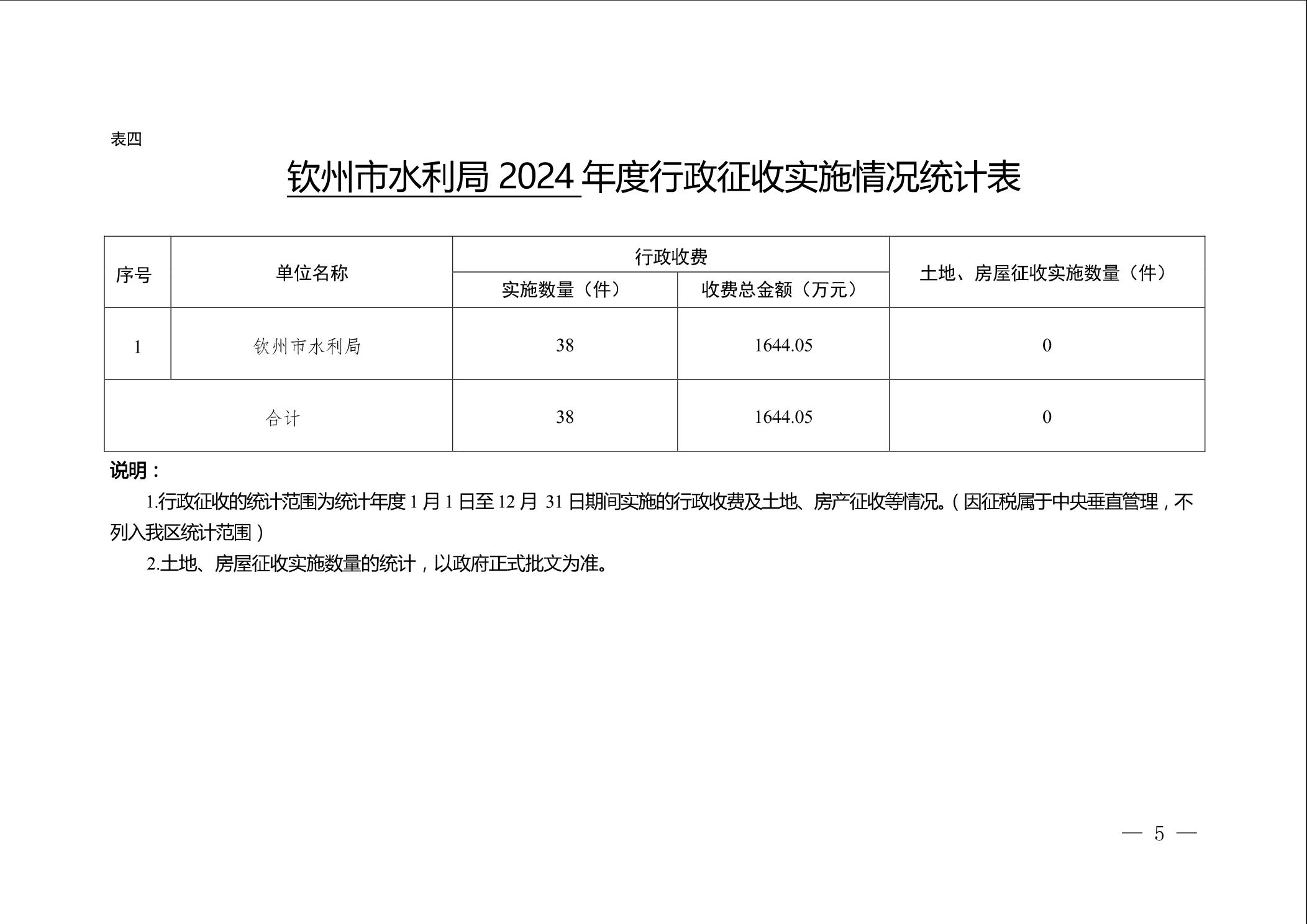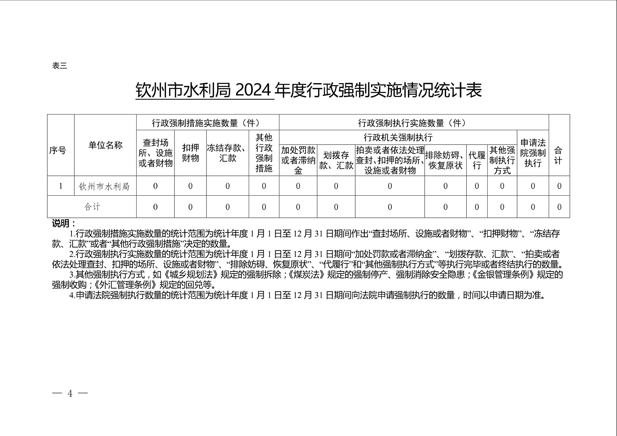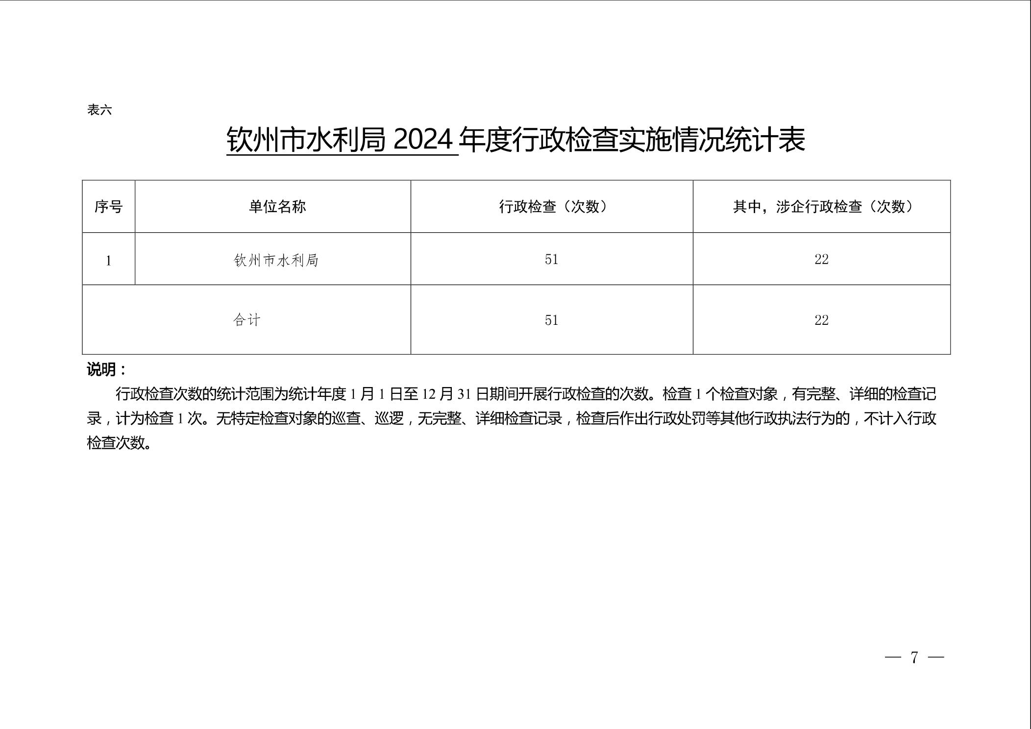 钦州市水利局2024年度行政执法数据